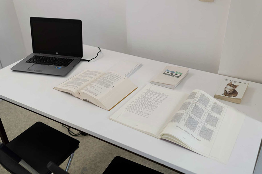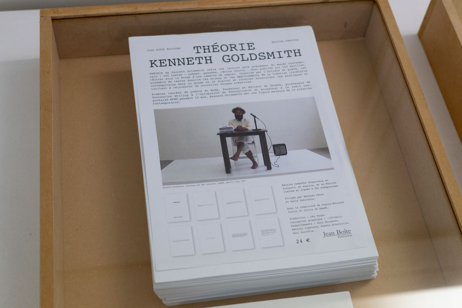 On the opening evening of the exhibition there was an online dialog between Kenneth Goldsmith, Laurence Rassel