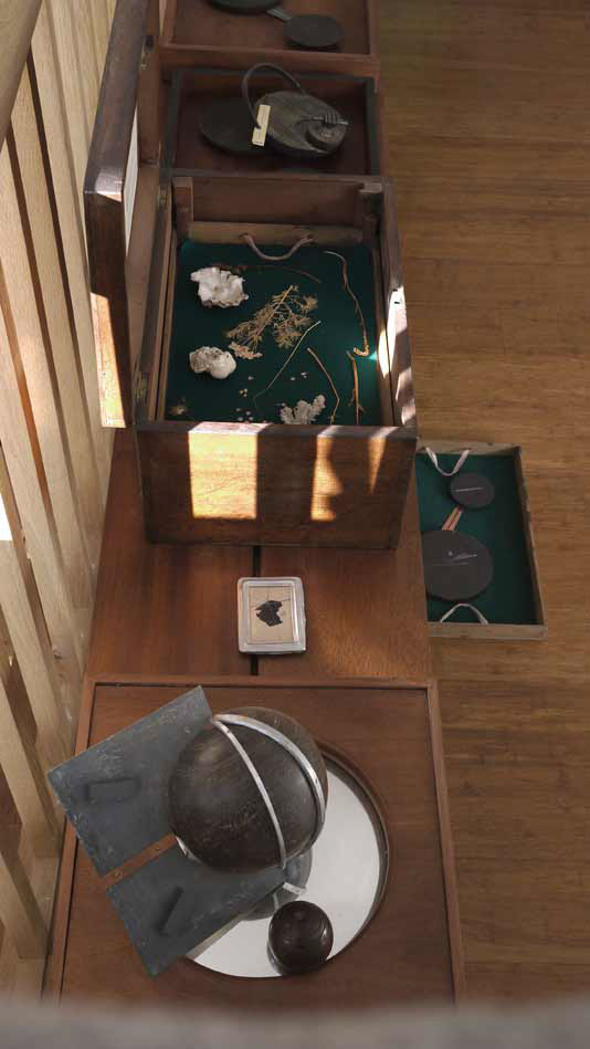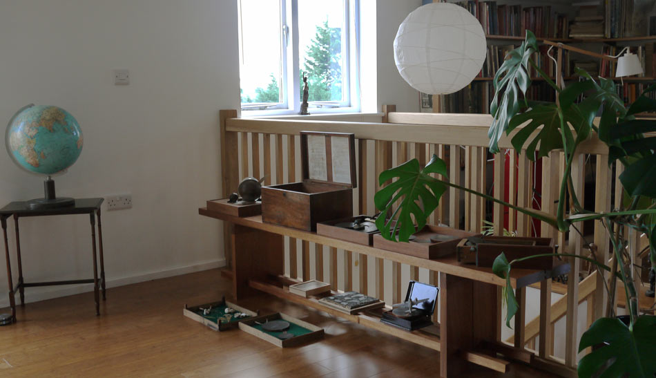 These thoughts about Flammarion’s book, as I recounted to my friend, had rekindled my interest in some research I had published on the subject of orreries some years earlier, and led me to create a series of carefully joined boxes using eighteenth-century mahogany (recycled from a decrepit Georgian table) in which I placed various low-relief constructions comprising polished discs of nineteenth-century lignum vitae (echoing Flammarion’s solid black Suns). The arrangement, even several years on, was still provisional and (apparently) only partially resolved, but what had become clear to me as the project progressed was that although they were made at separate times, using different literary and visual data, each object demanded to be placed in relation to another in a manner which dissolved the distinction between the artwork and its material context. The way that I had temporarily accommodated this demand was to place the objects on some furniture I had made that was now part of my domestic environment – a move that neatly reiterated the spatial enigma of the orrery. The core of the problem (that I discussed with my friend as we walked) was what I might do with the objects. I knew that a gallery would not be the right environment because the furniture would take on a different aspect once abstracted from its domestic context, and this would render the relationship the objects shared with one another and everything else around them incomplete. To begin with, there would need to be a library nearby that contained some of the references, as well as a space for viewers to linger a while to allow ideas to grow, and some tools to hand to make alterations. I also knew that these were no longer the sort of objects that would arouse the interest of the majority of visitors to public or private art galleries, and in any case the term ‘sculpture’ has become so imprecise and accommodating that the point of what I was trying to do would be lost.