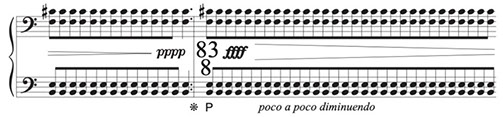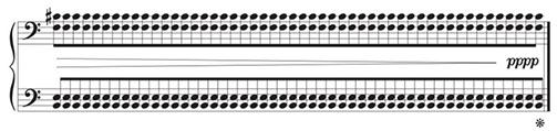 The last couple of repetitions are marked pppp. They should be just barely audible in a quiet room. When I reach the one hundred and fourteenth chord I hold it briefly, for just two more beats. It’s as if there are two more chords, so quiet they are imaginary.